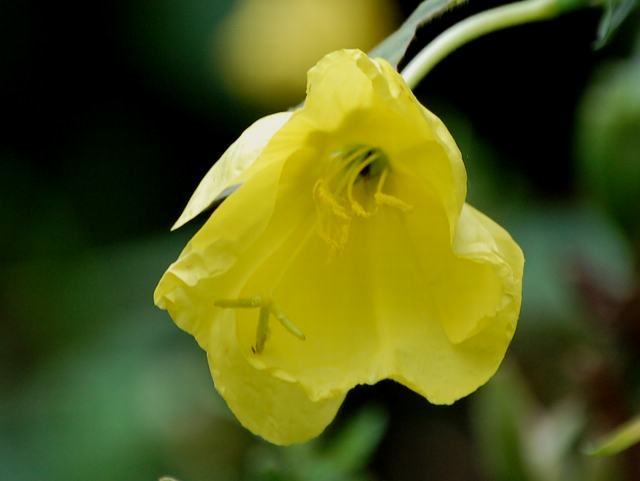 花は夕方に開き朝にはしぼむ黄色い一日花である。