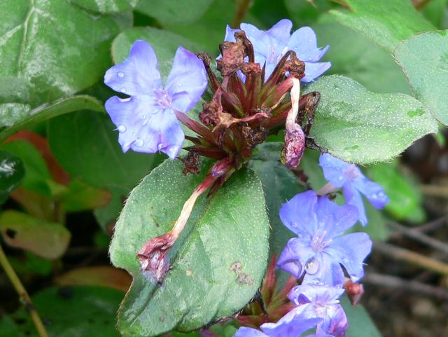 属名の Ceratostigma はギリシア語の「ceras(角)+stigma (柱頭)」からきている。柱頭(雌しべの先)の形から名づけられたものである。