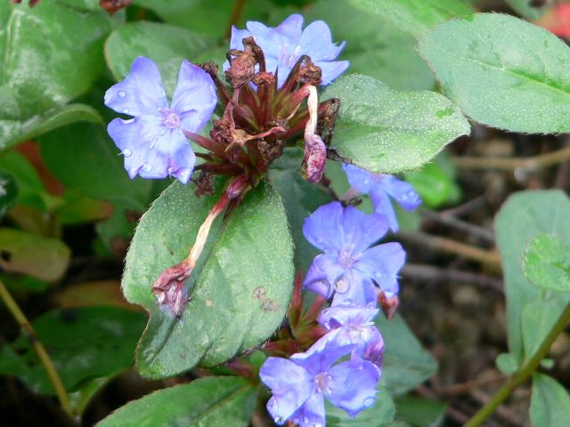 種小名の plumbaginoides は「ルリマツリ属(Plumbago)に似た」という意味である。