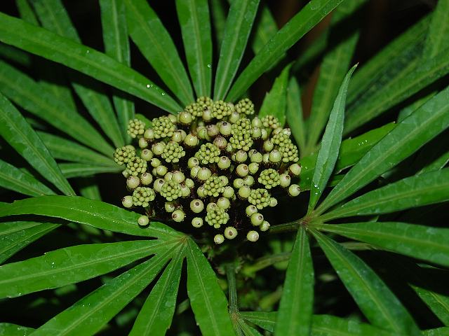 八手(ヤツデ)はウコギ科ヤツデ属の常緑低木である。