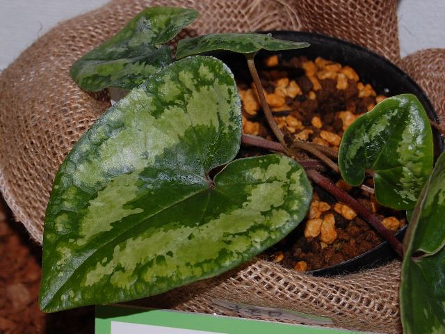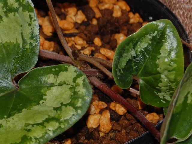 葉の表面には淡い緑色の斑紋があり、裏面には毛が生える。