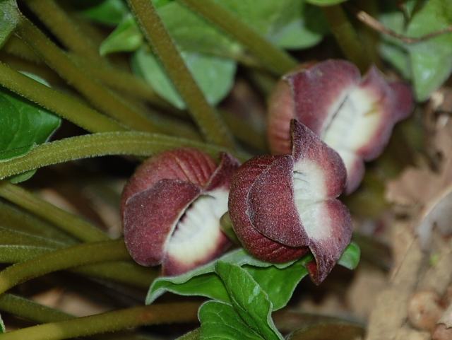 属名の Asarum はギリシャ語の「asaron(枝を打たぬ)」からきているが、関係は不明だという。
