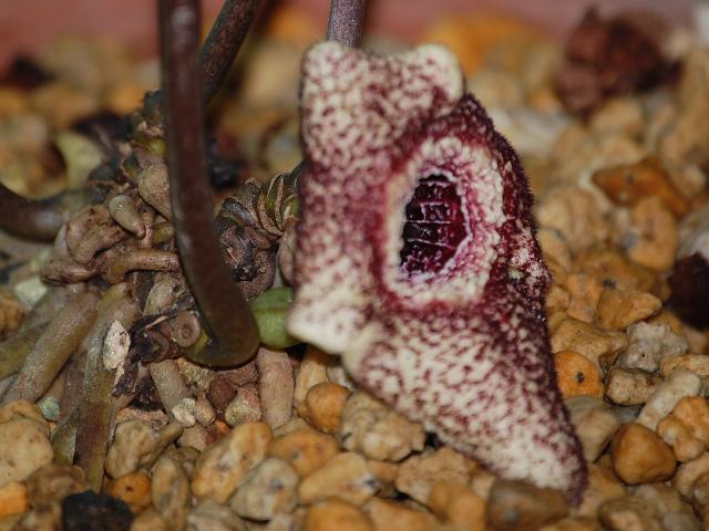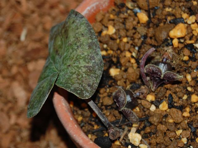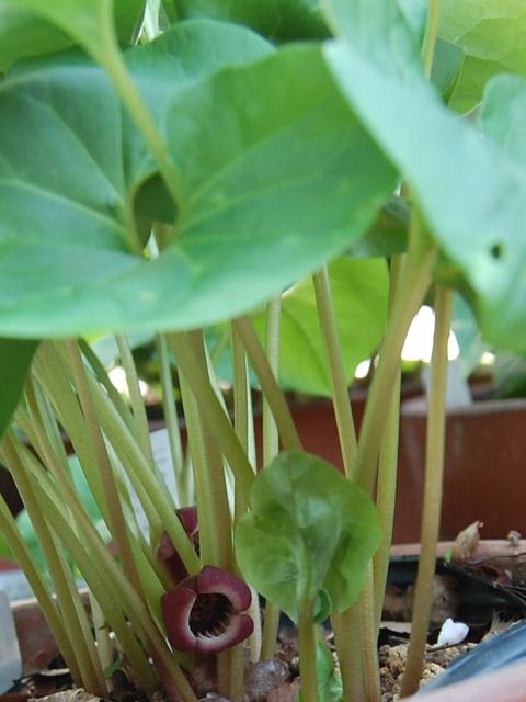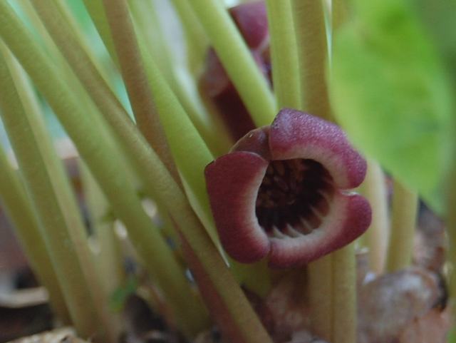 属名の Asarum はギリシャ語の「asaron(枝を打たぬ)」からきているが、関係は不明だという。