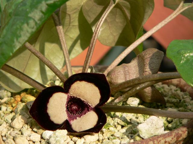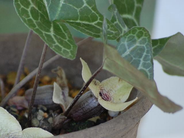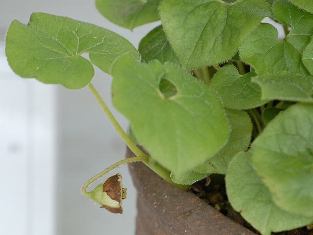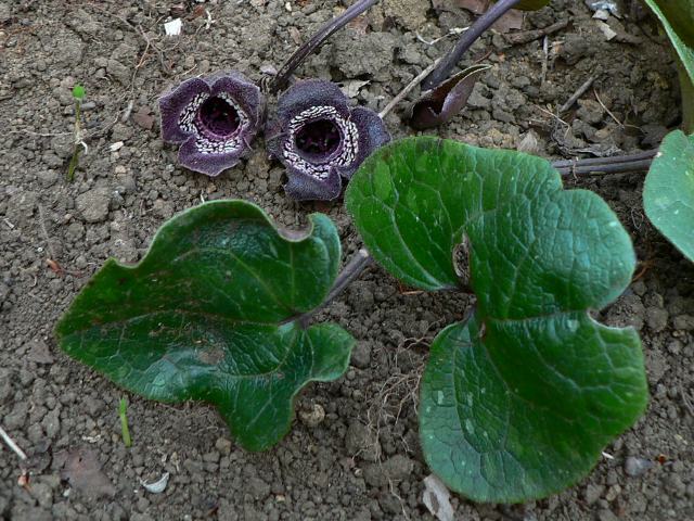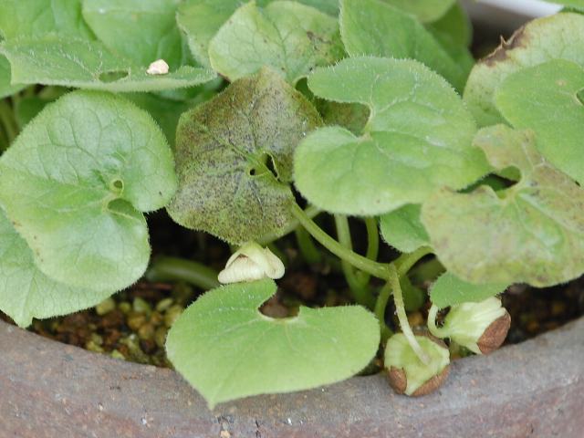 属名の Asarum はギリシャ語の「asaron(枝を打たぬ)」からきているが、関係は不明だという。