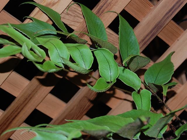 属名の Cyrtomium はギリシャ語の「cyrtoma(曲がり)」からきている。羽片が鎌形に曲がることから名づけられた。