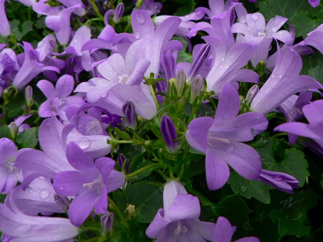 花径2センチくらいの濃い青紫色をして鐘形の花を密生させる。