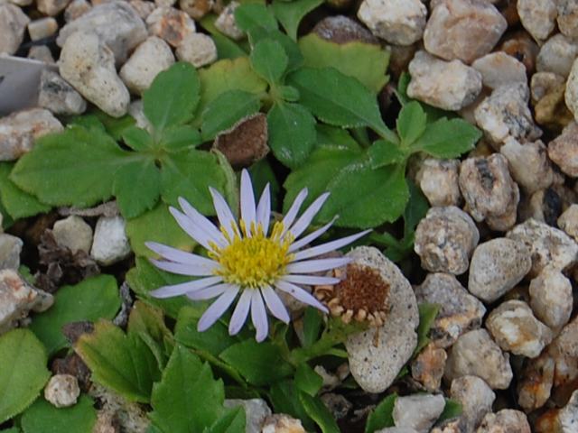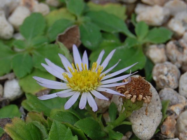 舌状花は白ないし淡い紫色で、筒状花は黄色である。