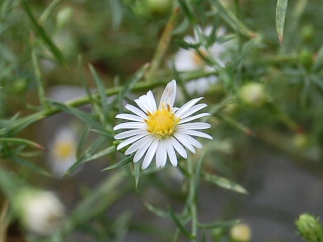 花径15ミリくらいの白い花(頭花)をたくさんつける。