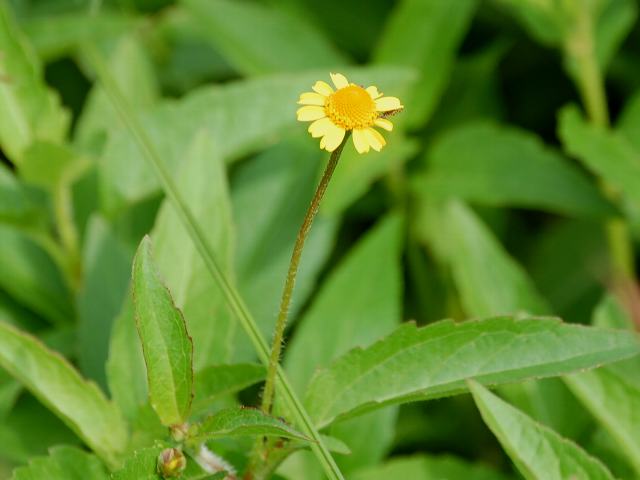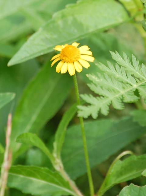 茎先に花径10~15ミリくらいの黄色い小さな花(頭花)を1輪ずつつける。