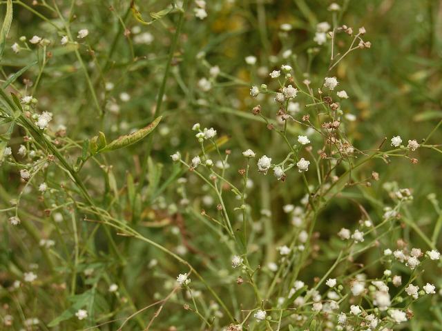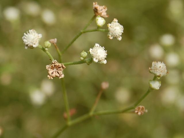 花径5ミリくらいの白い小さな花(頭花)をたくさんつける。