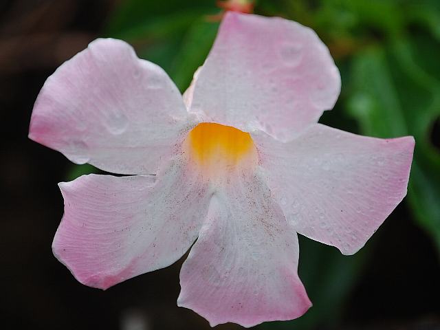 属名の Mandevilla は18世紀のイギリス人の外交官で造園家の「マンデビル(H. J. Mandeville)さん」の名からきている。
