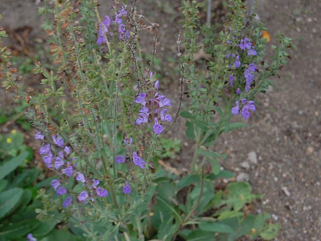 茎先に総状花序(柄のある花が花茎に均等につく)を出し、濃い青紫色の唇形の花をたくさんつける。