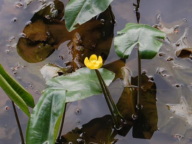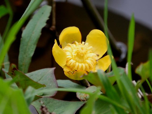 水中から花茎を伸ばして5センチほどの黄色い花を1輪咲かせる。