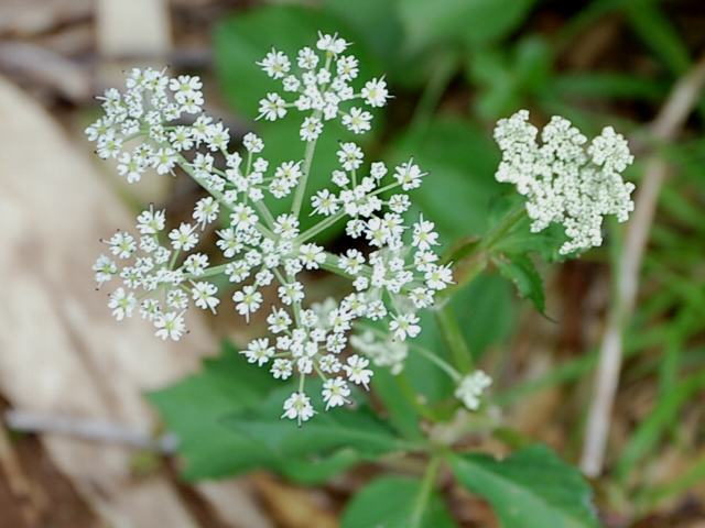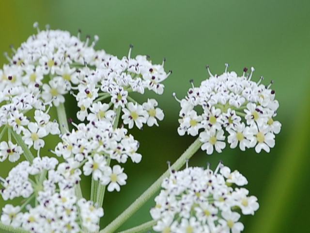 茎先に複散形花序をつけ、白い小花をたくさん咲かせる。
