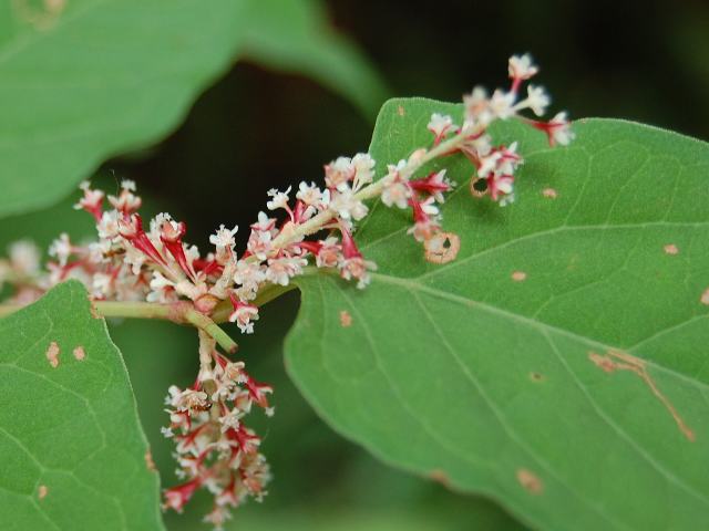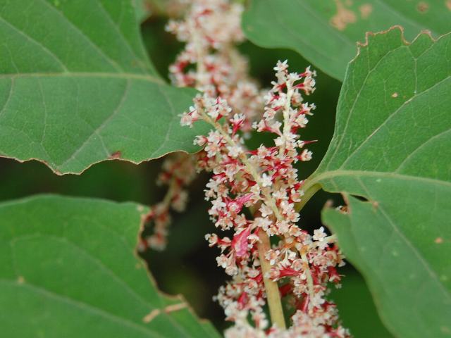 虎杖(イタドリ)の花は白いが、本種の場合は紅色を帯びる。