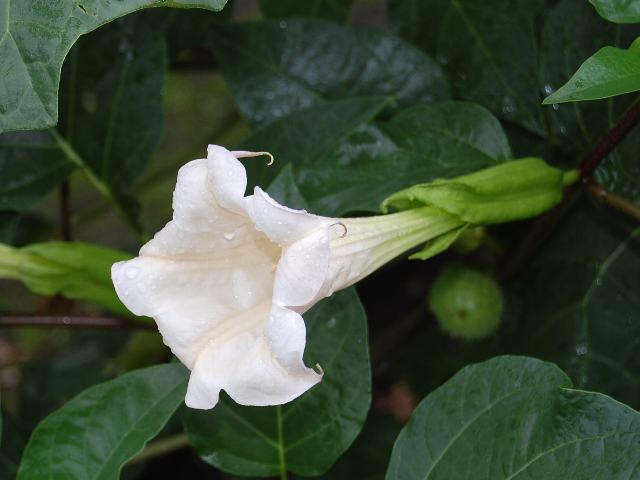 中国名を曼陀羅華(マンダラゲ)、英名をダチュラ(datura)という。