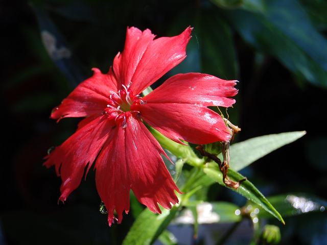 花は茎先や葉の脇につき、深い紅色から淡い紅色まで変異がある。