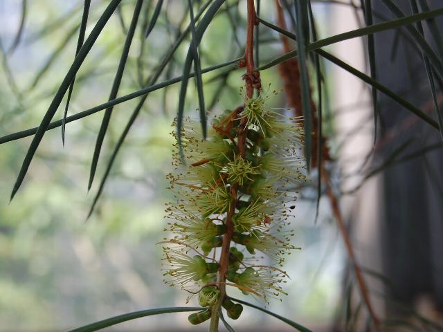 カリステモン・ピニフォリウスはフトモモ科ブラシノキ属の常緑低木である。