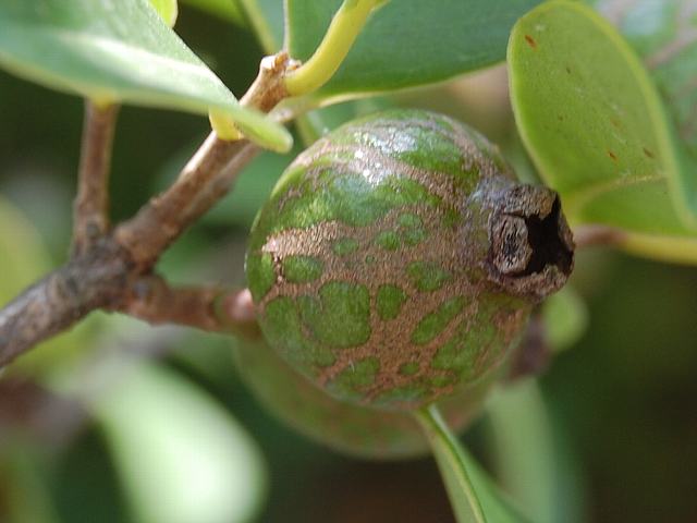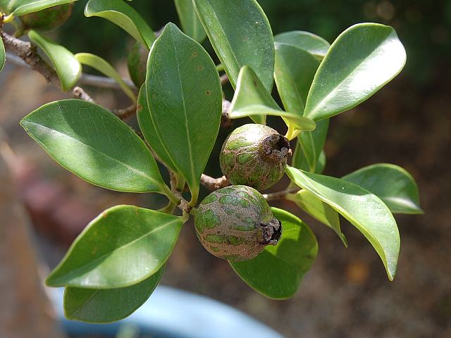 属名の Psidium はギリシャ語の「psidion(ざくろ)」からきている。