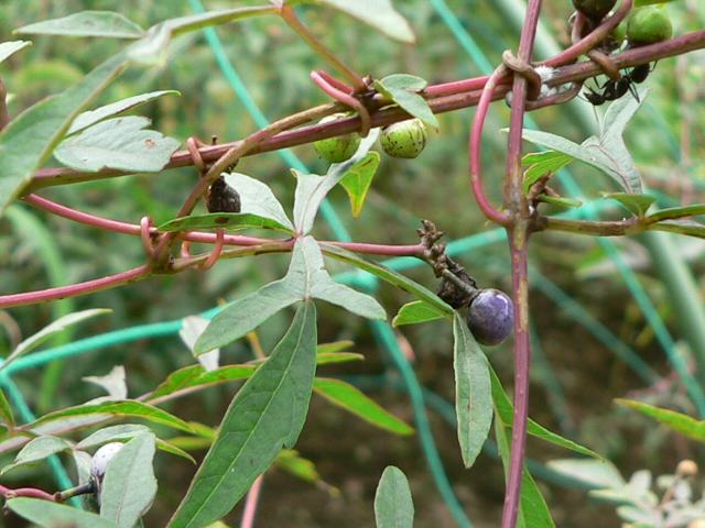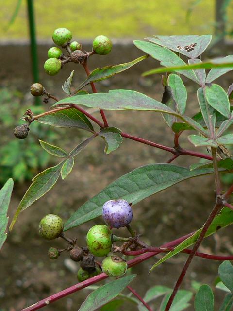 花の後には白、紫色、青など色とりどりの球形の液果(果皮が肉質で液汁が多い実)ができる。