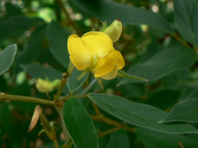 花は黄色く、マメ科特有の蝶形をしている。