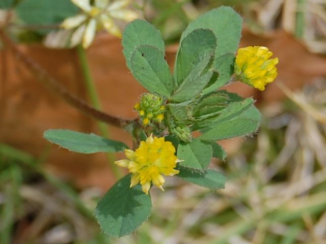 花径3、4ミリの黄色い蝶形の花が茎先に5個から20個くらい球形に集まってつく。