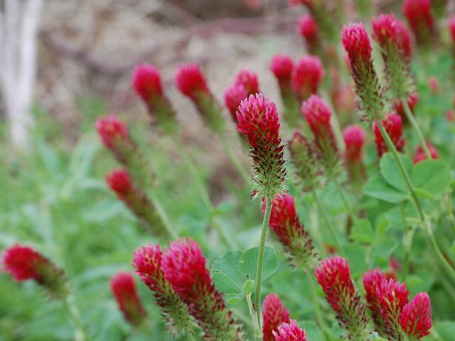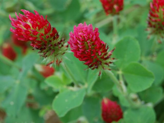あるいは、英名のクリムソン・クローバー(crimson clover)の名でも流通している。