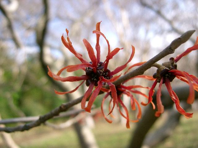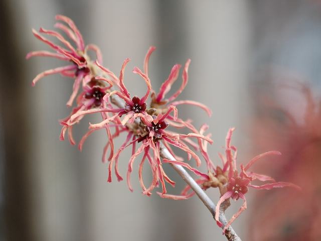 赤花満作(アカバナマンサク)はマンサク科マンサク属の落葉小高木である。