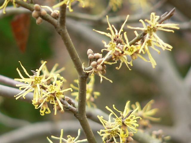 支那満作(シナマンサク)は日本の山野に自生する満作(マンサク)に較べ開花時期が早い。