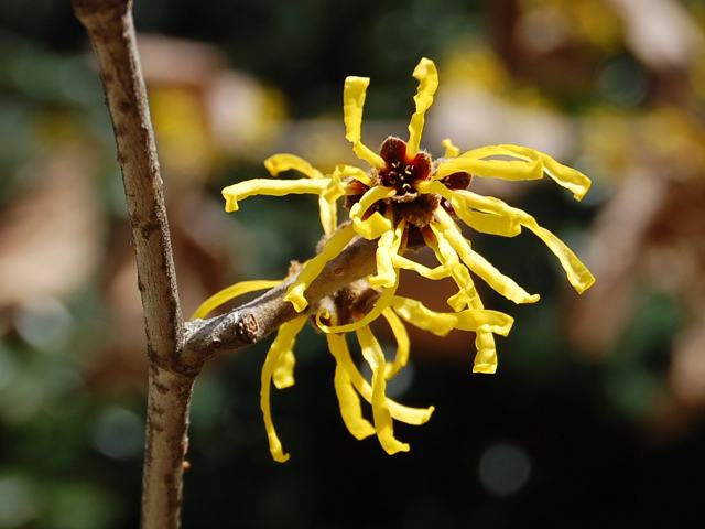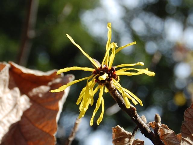 ねじれたリボンのような黄色い花を枝いっぱいにつける。