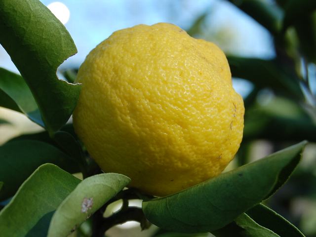 淡い黄色に熟した果実の表面には凸凹があり、強い香りがする。