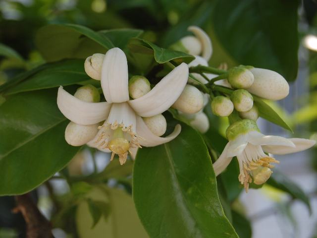 花はミカン属特有の白い5弁花だが、これも大きい。