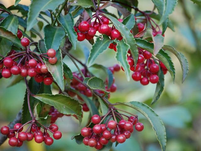 晩秋に液果(果皮が肉質で液汁が多い実)が赤く熟し、翌春まで木についている。