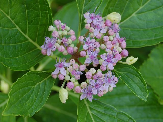 紫陽花(アジサイ)の原種で、関東地方、中部地方、伊豆諸島、小笠原諸島などに分布し、暖地の海岸の斜面などに生える。