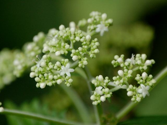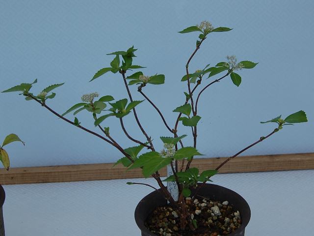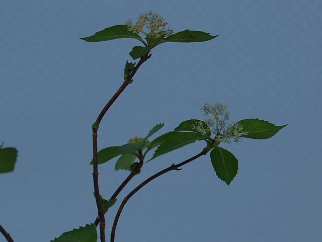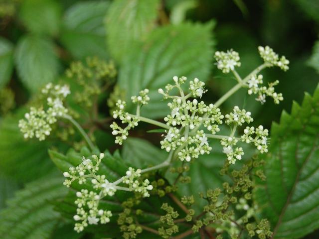 装飾花はなく、小さな両性花だけを密に咲かせる。