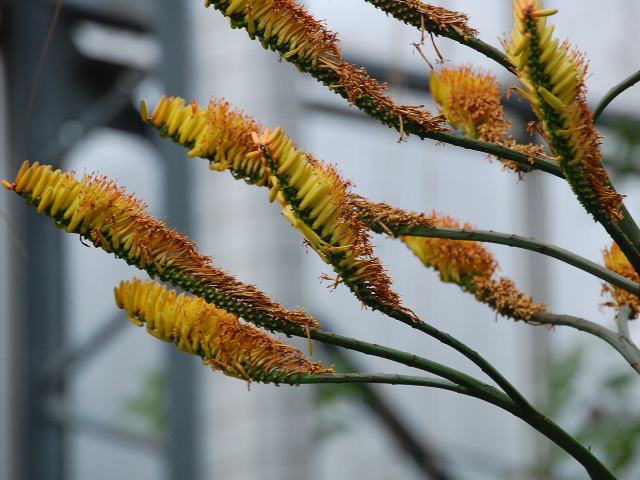 花は穂状につき、黄色ないし黄橙色をした筒状の花である。