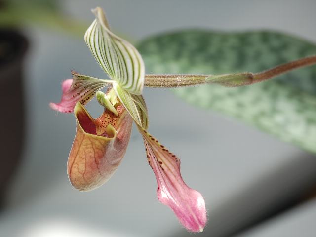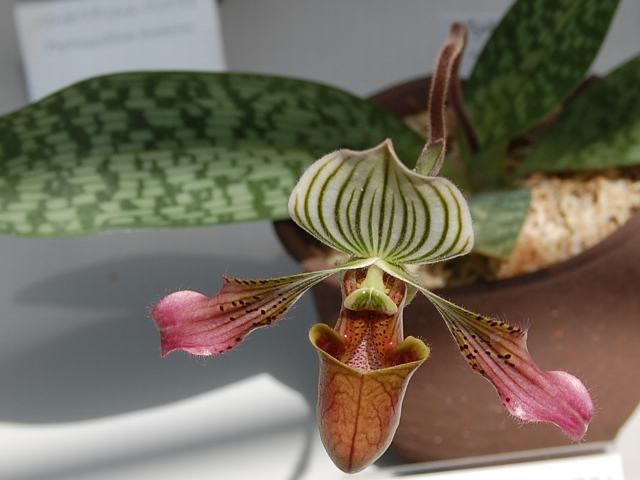 パフィオペディルム・アーバニアヌムはラン科トキワラン属(パフィオペディルム属)の多年草である。