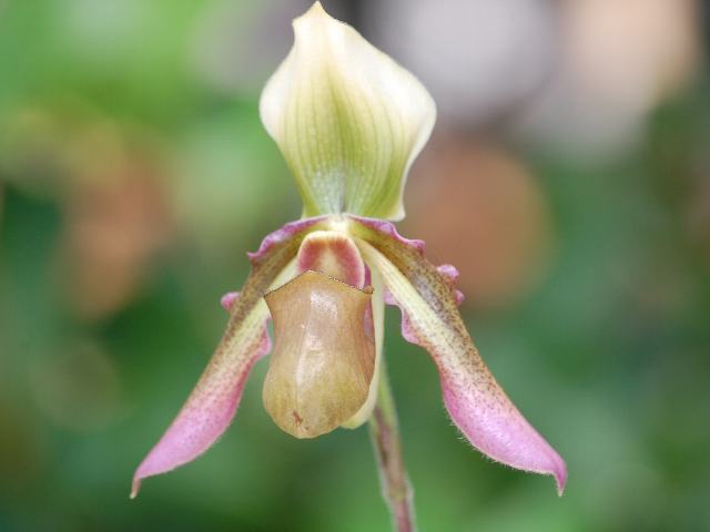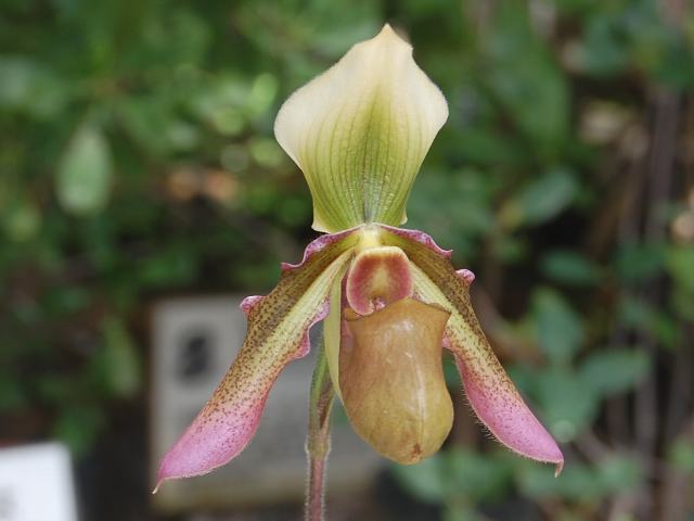 パフィオペディルム・フッケラエはラン科トキワラン属(パフィオペディルム属)の多年草である。