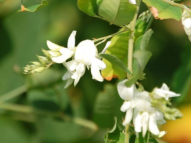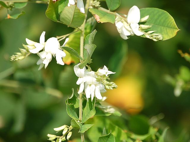 白い蝶形の花をつける。