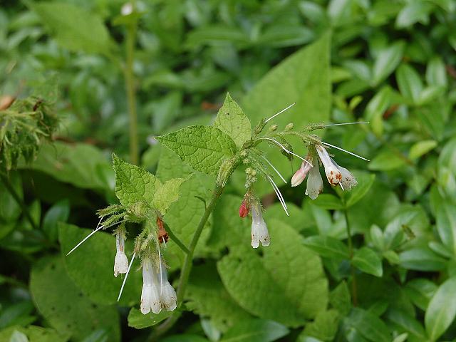 属名の Symphytum はギリシャ語で「symphyton(癒合する)」からきている。切り傷の薬となることから名づけられた。