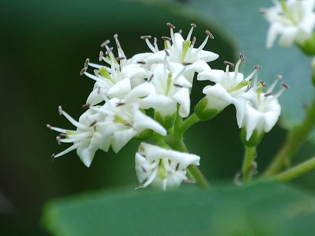 枝先に円錐花序(枝分かれして全体が円錐状に見える)を出し、白い小さな花をたくさんつける。