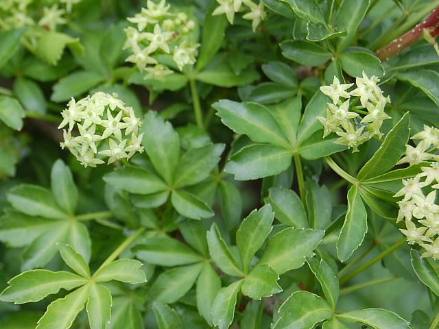 枝先に散形花序(枝先に1個つずつ花がつく)を出し、緑色の小さな花をたくさんつける。