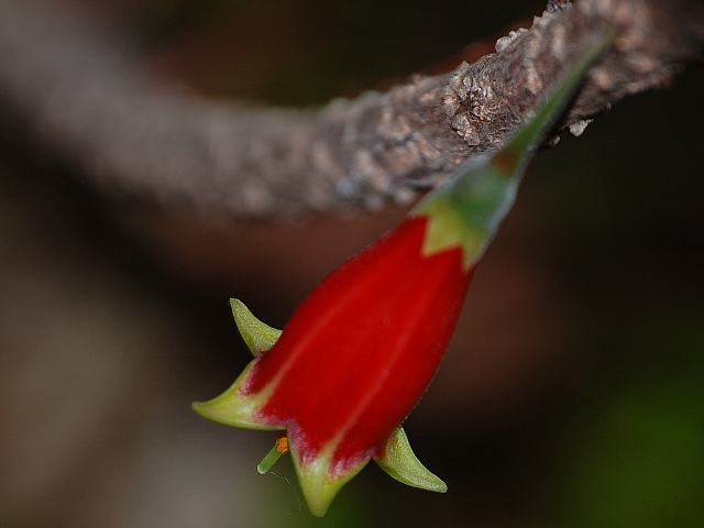 葉の脇に花径15ミリから20ミリくらいの筒状花を下垂させる。