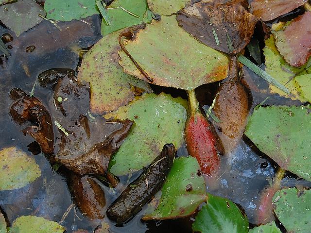 泥の中に根を伸ばし、菱形の葉がたくさん水面に浮く。