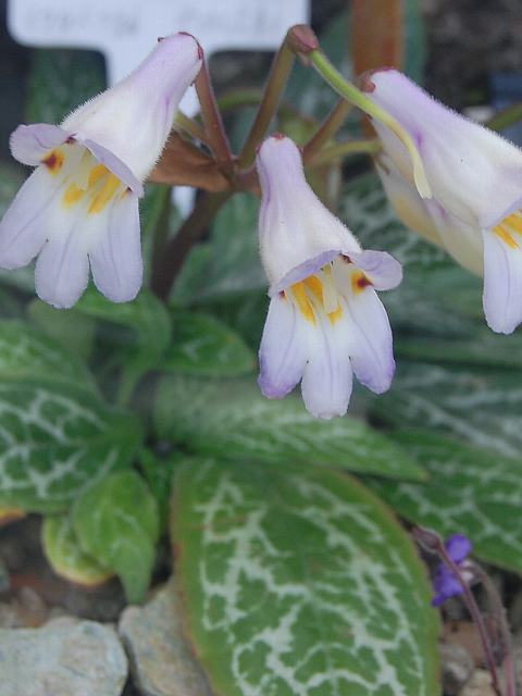 葉の質は分厚く、葉脈に沿って銀白色の斑が入る。
