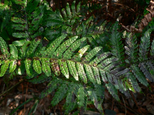 胞子のう群は葉の上部半分の羽片の中肋と辺縁の中間につく。