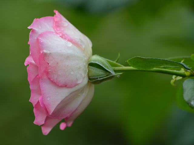 花の色は白く、濃いピンクの覆輪が入る。