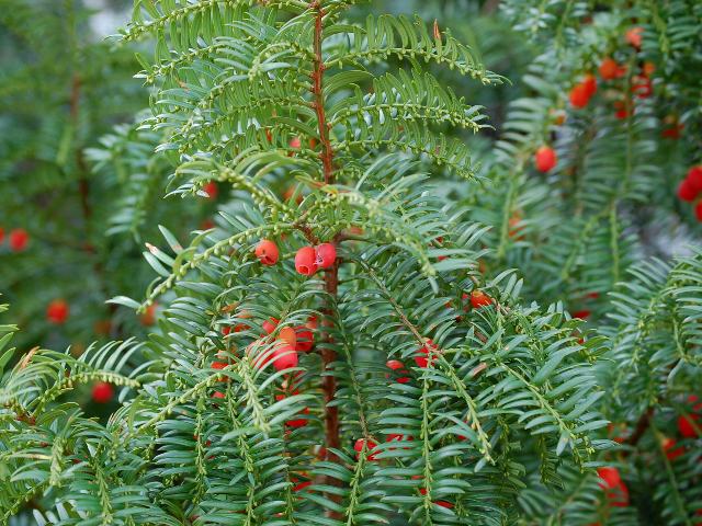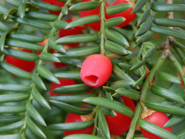 属名の Taxus はギリシャ語の「taxos(ヨーロッパイチイ)」からきている。