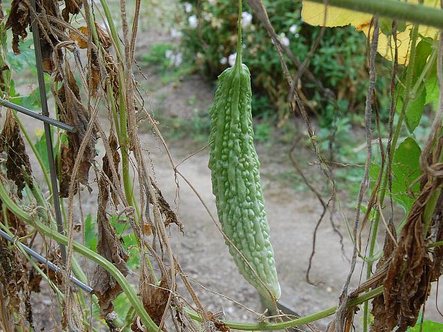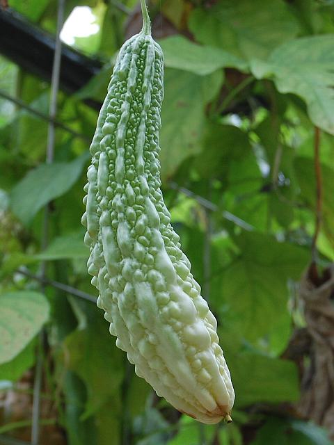 蔓茘枝(ツルレイシ)は別名を苦瓜(ニガウリ)という。