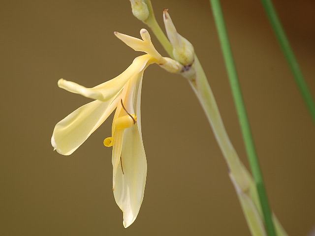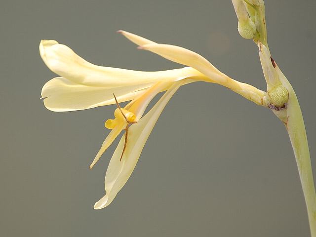 また、花の色は白というより黄白色だし、よそには黄色のものもあるようである。